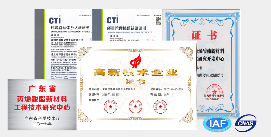 瑞晟新材料,成立于2005年,系專業(yè)從事綠色環(huán)保材料研發(fā),生產(chǎn)和銷售的高科技企業(yè)。主要產(chǎn)品包括水性UV樹脂,聚氨酯丙烯酸酯、改性環(huán)氧丙烯酸酯、丙烯酸樹脂,特殊改性聚酯樹脂以及其他特殊新材料等,年產(chǎn)量可達一萬噸。產(chǎn)品用途廣泛,涉獵眾多,主要應用于智能家電、智能穿戴、智能家居,汽車內外飾,工程機械等。占地50畝,是專業(yè)從事新材料研發(fā)、生產(chǎn)和銷售的國家高新技術企業(yè)和廣東省專精特新中小企業(yè)。主要產(chǎn)品包括水性UV樹脂、聚氨酯丙烯酸酯、丙烯酸樹脂、聚酯樹脂、無機納米水性陶瓷樹脂以及其他特殊新材料等,年產(chǎn)量可達一萬噸。產(chǎn)品用途廣泛,符合當前環(huán)保要求。涉及產(chǎn)業(yè)眾多,主要應用于:3C(手機、筆記本電腦等)、汽車內飾、家電家具、工程機械、市政工程等。